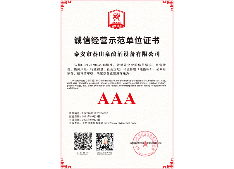 泰安市泰山泉釀酒設(shè)備有限公司,是一家專業(yè)從事釀酒設(shè)備機(jī)械化研發(fā)并集技術(shù)咨詢,工程設(shè)計(jì),制造安裝,人員培訓(xùn)及售后服務(wù)為一體的綜合性企業(yè),本公司主要產(chǎn)品為:大曲清香、小曲清香、大曲醬香、大曲濃香等香型白酒機(jī)械化設(shè)備。 本公司與中國科學(xué)院自動(dòng)化研究所簽訂技術(shù)服務(wù)合同,引進(jìn)先進(jìn)技術(shù),研究生產(chǎn)全自動(dòng)化機(jī)械釀酒設(shè)備,由中國科學(xué)自動(dòng)化研究所的技術(shù)支持,打造最先進(jìn)的生產(chǎn)釀酒設(shè)備,公司有信心打造全國最先進(jìn)白酒...